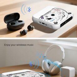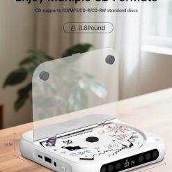 Multi-functional CD Player: 1.Desktop CD Player, 2.Bluetooth 5.0 HiFi Speaker, 3. FM Radio, 4.TF card Music Player, 5.USB Flash Drive Player, 6. 3.5mm Audio Player. Support CD, CD-G, MP3, WMA.